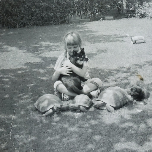 Loving other animals (humans are animals too) has confronted me with horror, tragedy, mourning, and loss. Yet my life has been replete with animals. This picture of me is evocative: encircled by turtles, holding a cat, with a puppy nearby! Paradoxically, it was in caring for such animals that my love for nature was nurtured.